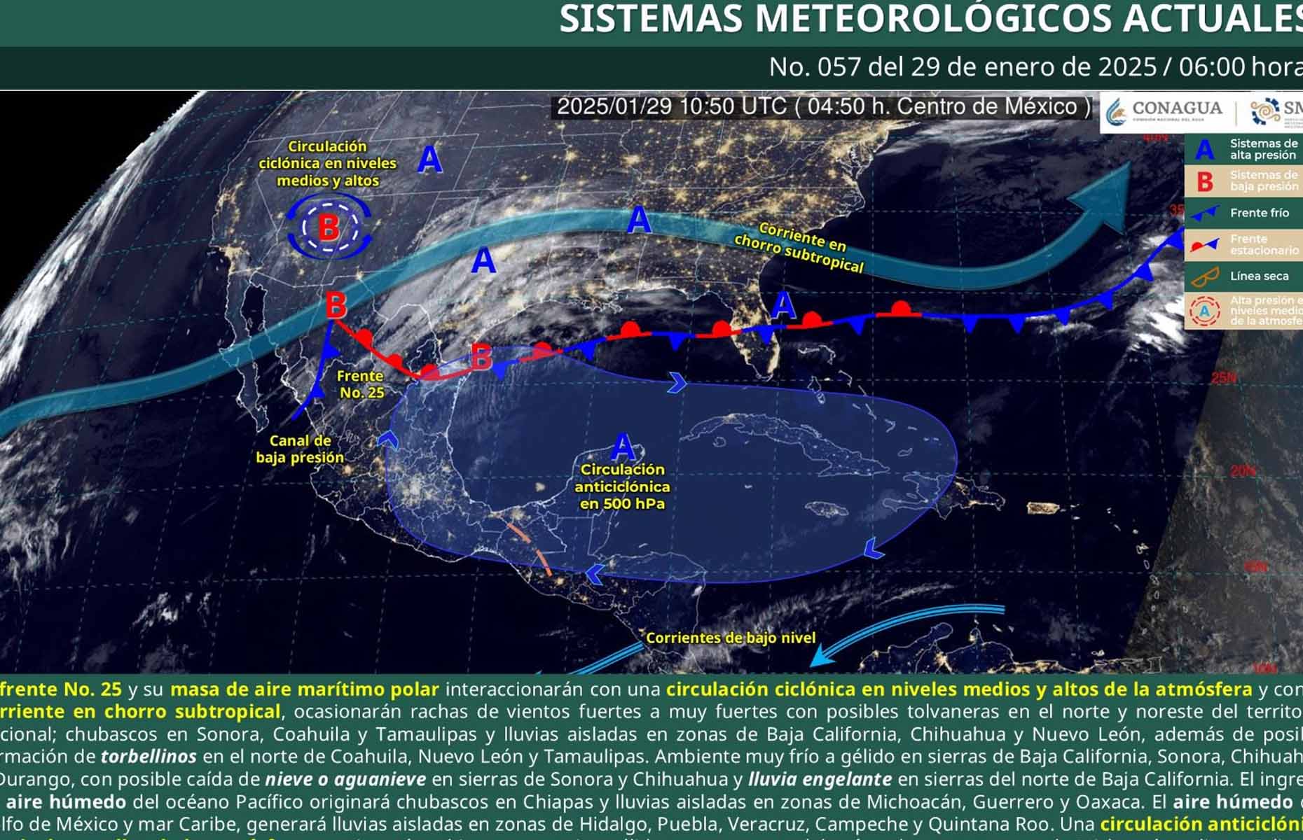 Por otro lado, el frente frío número 25 por el momento tendrá poca influencia en territorio oaxaqueño debido al bloqueo que ejerce el anticiclón.