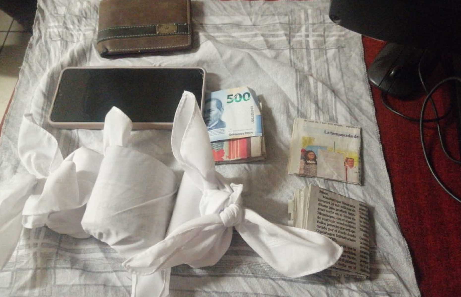 Indicó haber retirado dinero en la calle de Hidalgo esquina con 20 de noviembre y que, a su salida, una mujer la abordó diciéndole que había encontrado un pañuelo con la cantidad de 50 mil pesos. Posteriormente, una segunda persona, del sexo masculino, comenzó a seguirla hasta su llegada al Jardín Sócrates, donde ahora la señalaba de haber tomado dinero de él.
