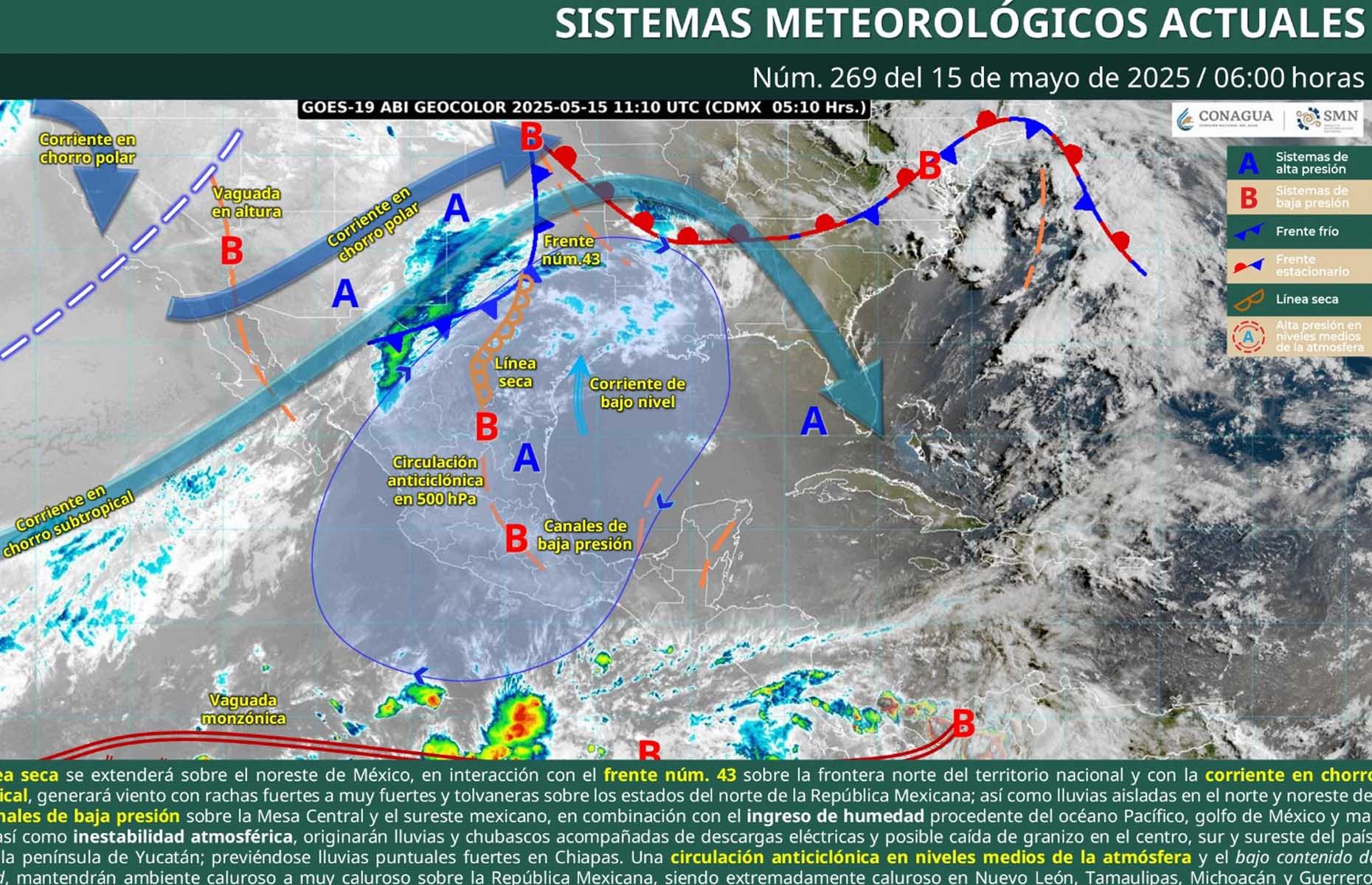 Por otro lado, este jueves inicia oficialmente la Temporada de Lluvias y Ciclones Tropicales 2025 en el Océano Pacífico y termina el 30 de noviembre.