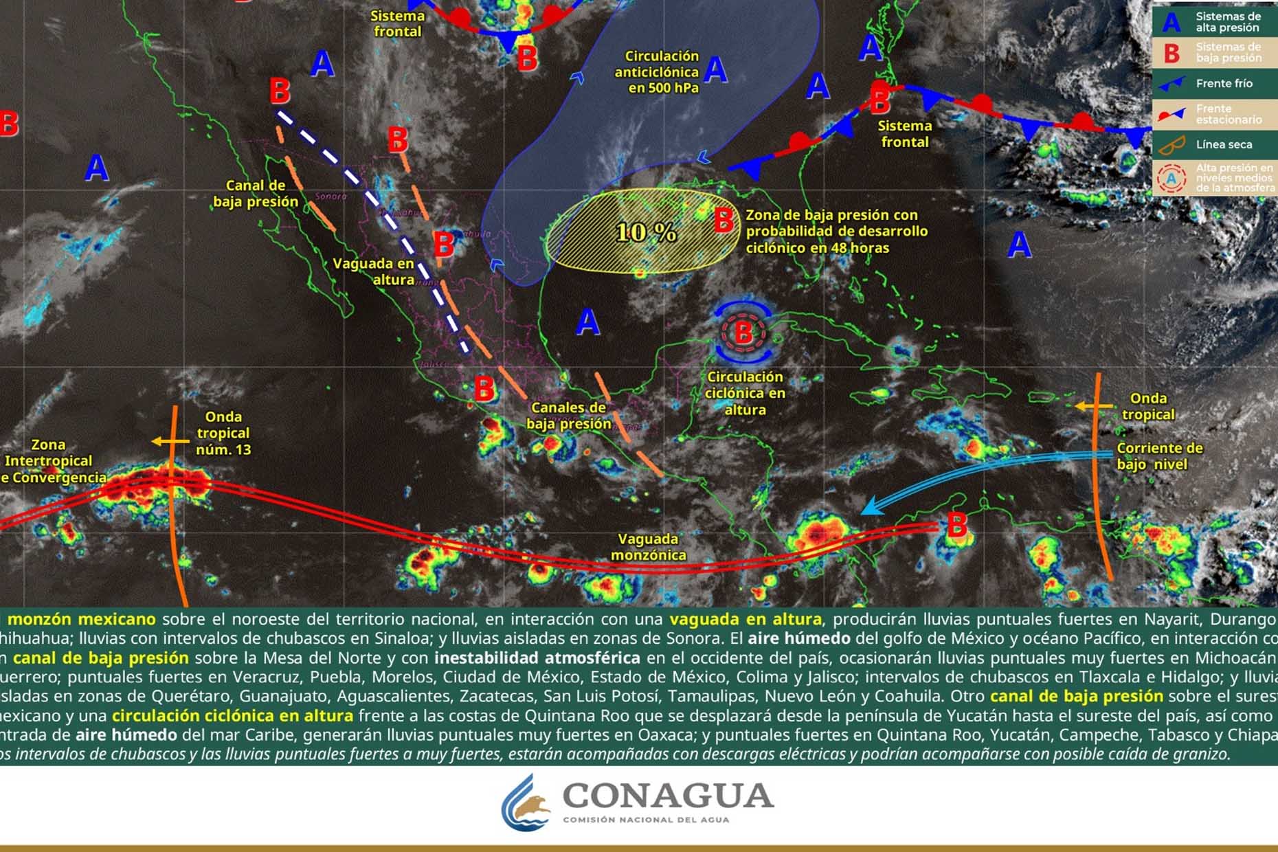 La Coordinación Estatal de Protección Civil y Gestión de Riesgos (CEPCyGR) informa que, se esperan eventos de lluvia más frecuentes y con mayor área de influencia asociados con tormentas localmente fuertes con mayor énfasis en horas de la tarde-noche; algunas estarán asociadas con actividad eléctrica, rachas fuertes de viento, sin descartar granizo.