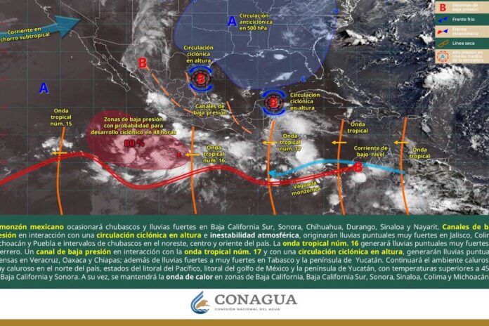 La Coordinación Estatal de Protección Civil y Gestión de Riesgos (CEPCyGR) informa que, las ondas tropicales número 16 y 17 seguirán marcando el tiempo durante las próximas 48 horas, desarrollando lluvias de intensidad variables y tormentas significativas en horas de la tarde-noche en gran parte de la entidad.