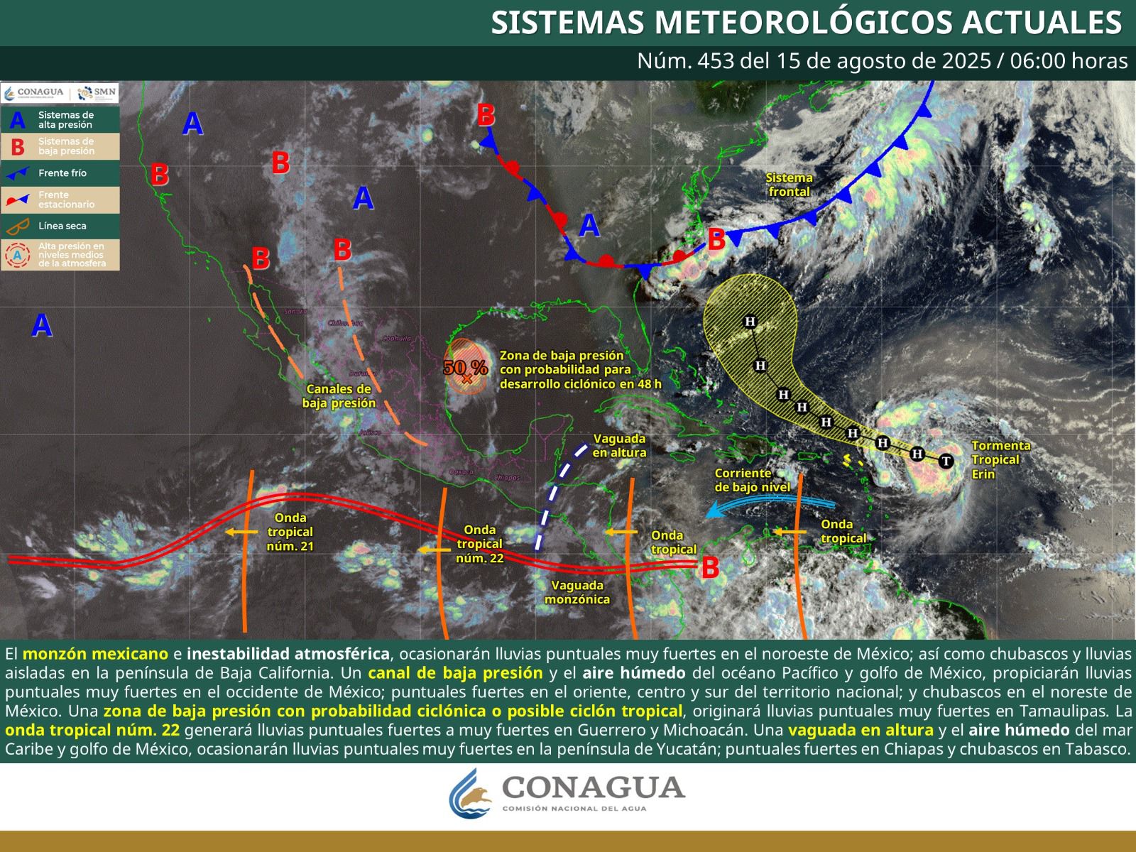 La Coordinación Estatal de Protección Civil y Gestión de Riesgos (CEPCyGR) informa que se esperan lluvias en la mayor parte de la entidad, principalmente tormentas de corta duración y rápido desplazamiento sobre la Mixteca y Sierra Sur, donde también es probable se registren fuertes chubascos y rachas de viento sin descartar caída de granizo.