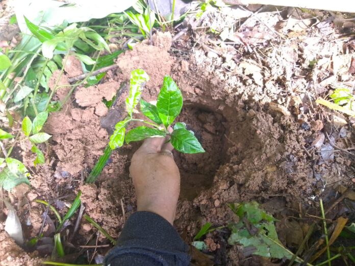 Durante la actividad realizada en coordinación con el comisariado de bienes comunales, en el paraje La Estrella, se plantaron 405 ejemplares de cacao, 7 mil 925 de café y 300 de canela, todos provenientes del vivero de la Coesfo en San Juan Cotzocón, garantizando especies de calidad y adaptadas a las condiciones de la región.