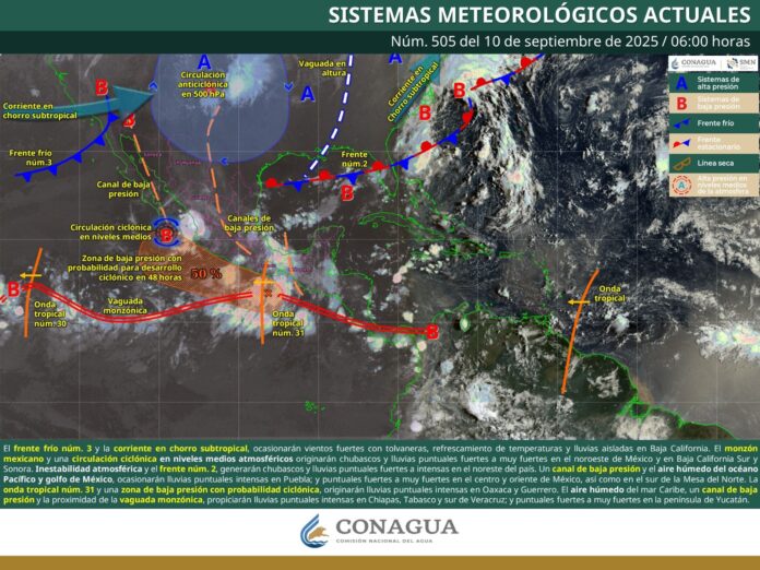 Estos fenómenos son ocasionados por la onda tropical número 31, asociada con una baja presión y flujo de humedad impulsada por la vaguada monzónica.