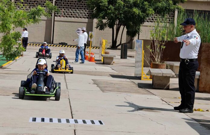 Como parte de esta estrategia, personal de la corporación encabezada por Toribio López Sánchez ofrece pláticas de educación vial e instala un circuito infantil, donde las y los participantes conocen de forma práctica las normas básicas de tránsito y el uso adecuado de los espacios públicos.