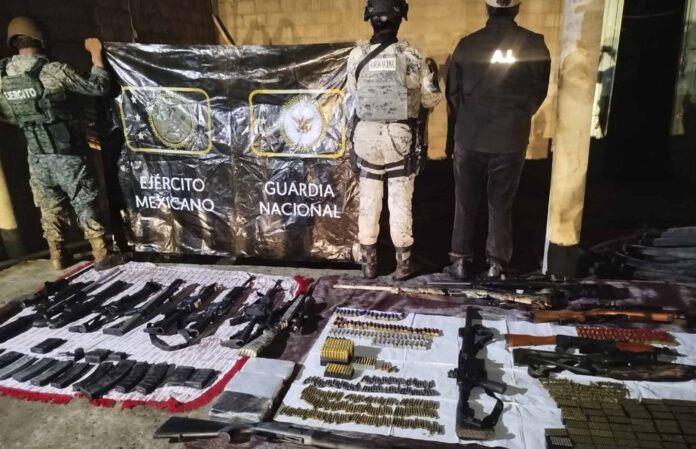 Gracias a los trabajos coordinados entre la Fiscalía General del Estado de Oaxaca (FGEO), a través de la Agencia Estatal de Investigaciones (AEI), junto con la Secretaría del Defensa Nacional (DEFENSA), Secretaría de Marina, Guardia Nacional y la Policía Estatal, se realizó un cateo al interior de un rancho donde se logró el aseguramiento de decenas de armas de fuego de diferentes calibres, así como de cientos de cartuchos útiles y vehículos, acción llevada a cabo en la región del Istmo de Tehuantepec.