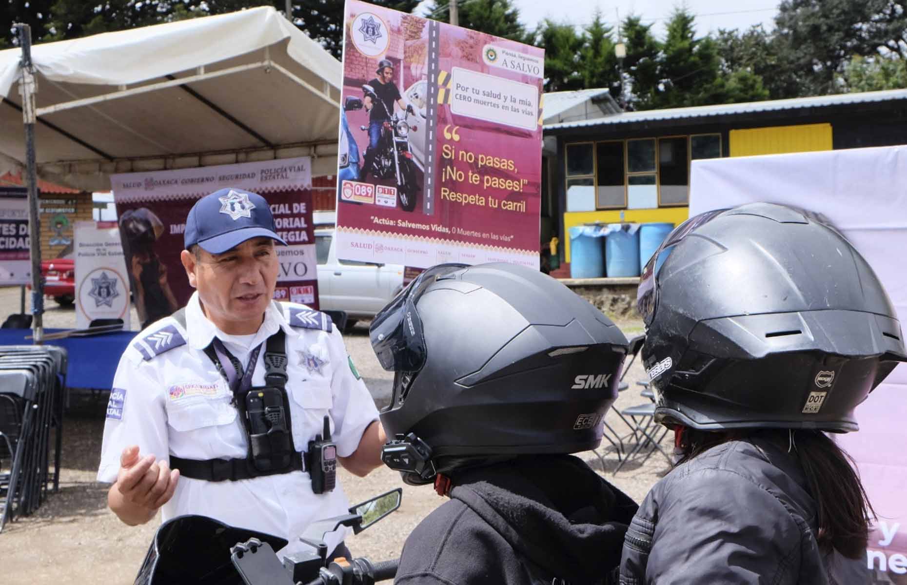 Ante autoridades de San Juan Evangelista Analco y Nuevo Zoquiápam se destacó que la conducción responsable y el uso adecuado del equipo de protección personal de las y los motociclistas que transitan por esta importante vía de la Sierra de Juárez, contribuye a la prevención de accidentes, lesiones, discapacidades adquiridas y la pérdida de vidas humanas.