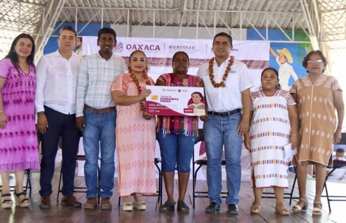 La Secretaría de Bienestar, Tequio e Inclusión (Sebienti) entregó 816 plásticos del programa Tarjeta Margarita Maza a igual número de jefas de familia de Santiago Pinotepa Nacional, en la región Costa.