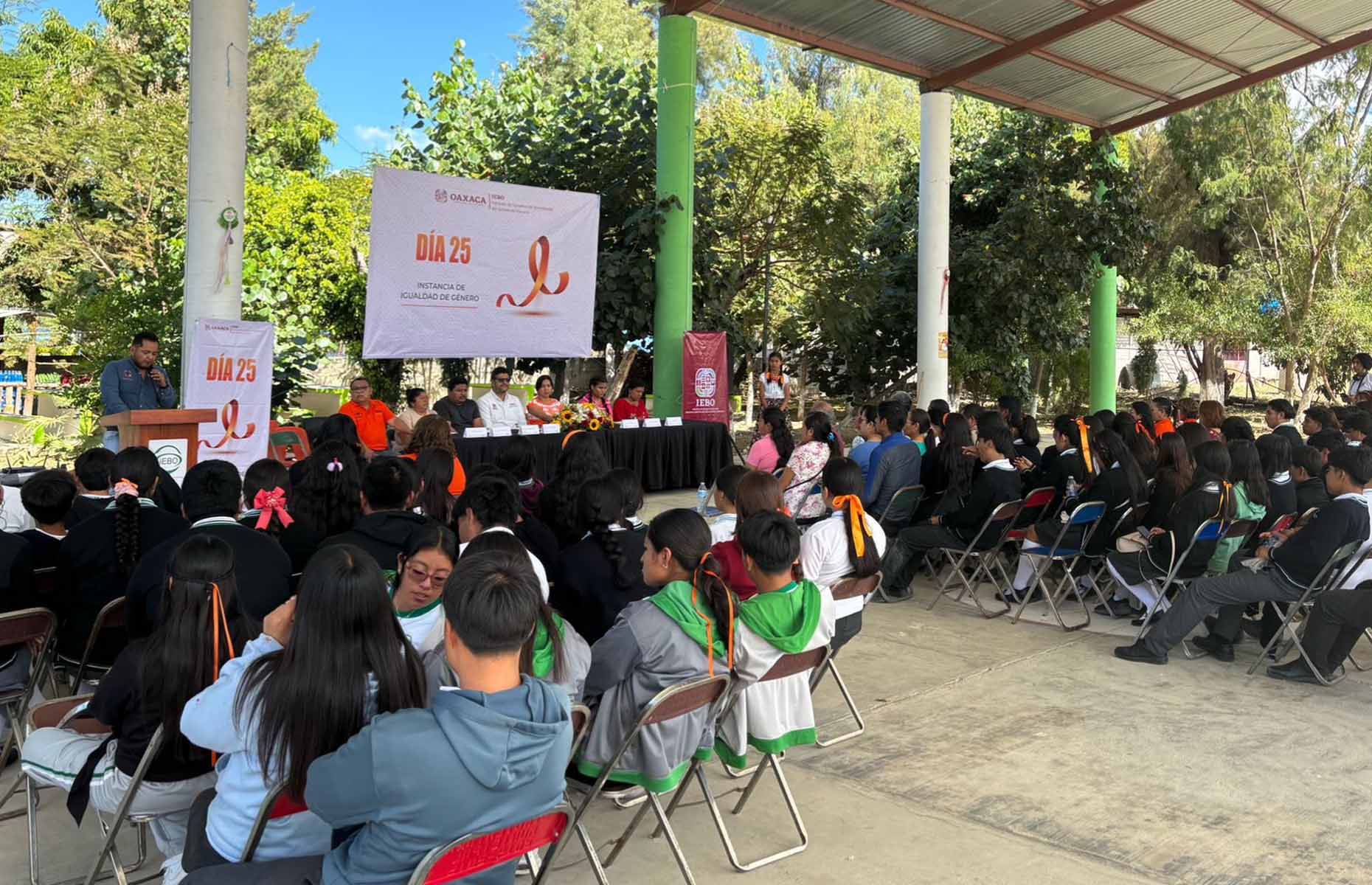 El Instituto de Estudios de Bachillerato del Estado de Oaxaca (IEBO) realizó una jornada de actividades de sensibilización, dirigida a la comunidad estudiantil del plantel 119 San Juan Teitipac, para prevenir agresiones hacia niñas, adolescentes y mujeres.