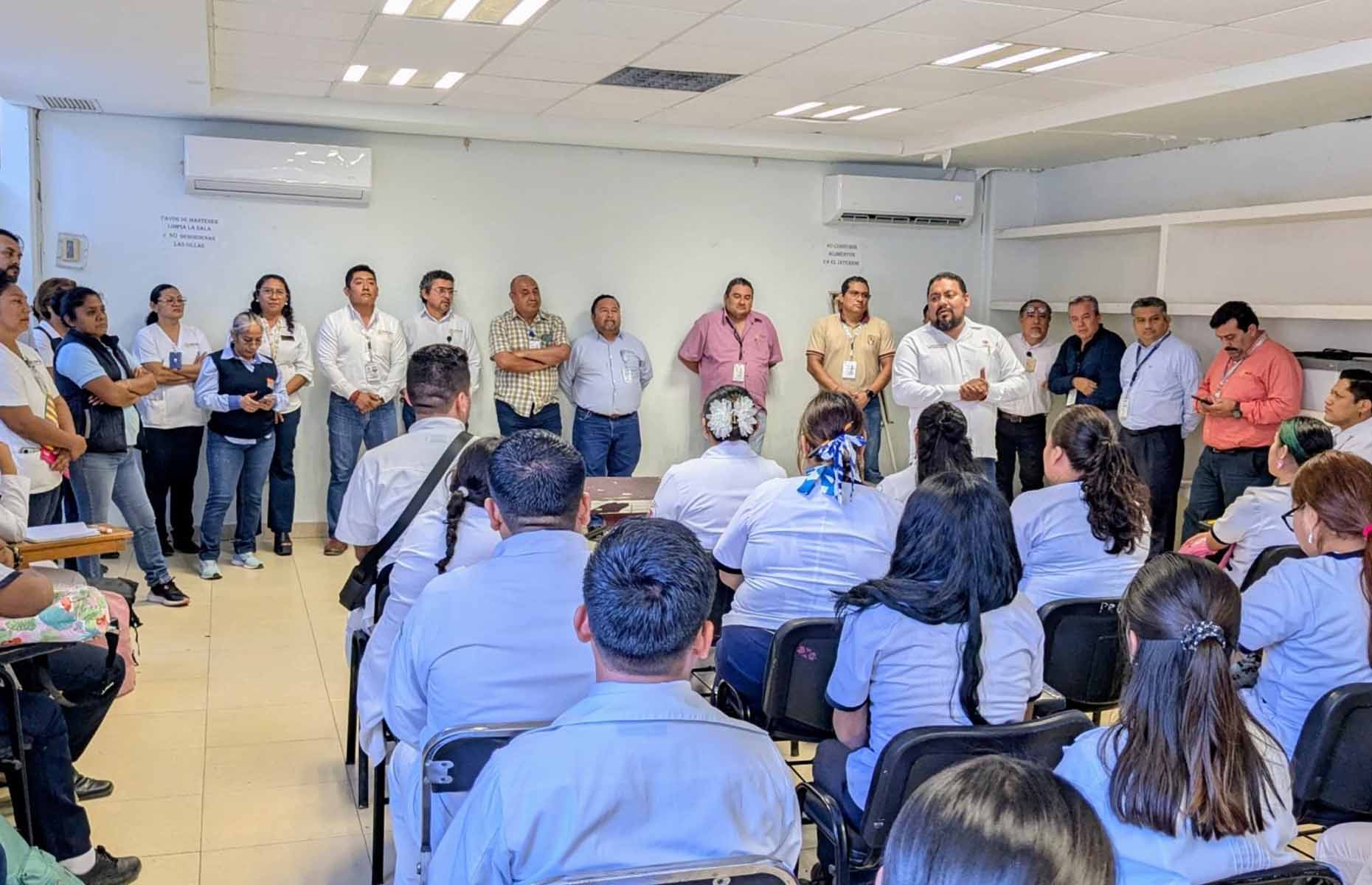 Previo al curso de inducción correspondiente a la promoción 2026–2027, el jefe jurisdiccional, Hebert Vidal Sánchez encabezó la recepción de las y los pasantes de las licenciaturas en Medicina Cirujano y Partero, Enfermería, Odontología, Psicología, Nutrición, Terapia Física y Trabajo Social; quienes reforzarán la atención en la red hospitalaria y de primer nivel de la zona.