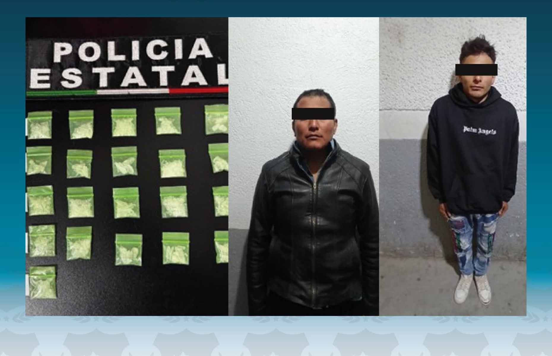 Tras una inspección preventiva, les fueron localizadas 21 bolsitas de nailon transparentes que contenían una sustancia con características de la droga conocida como cristal, por lo cual, A.R.M., y L.E.V.G., de 35 y 26 años respectivamente, fueron puestos a disposición de la autoridad correspondiente.