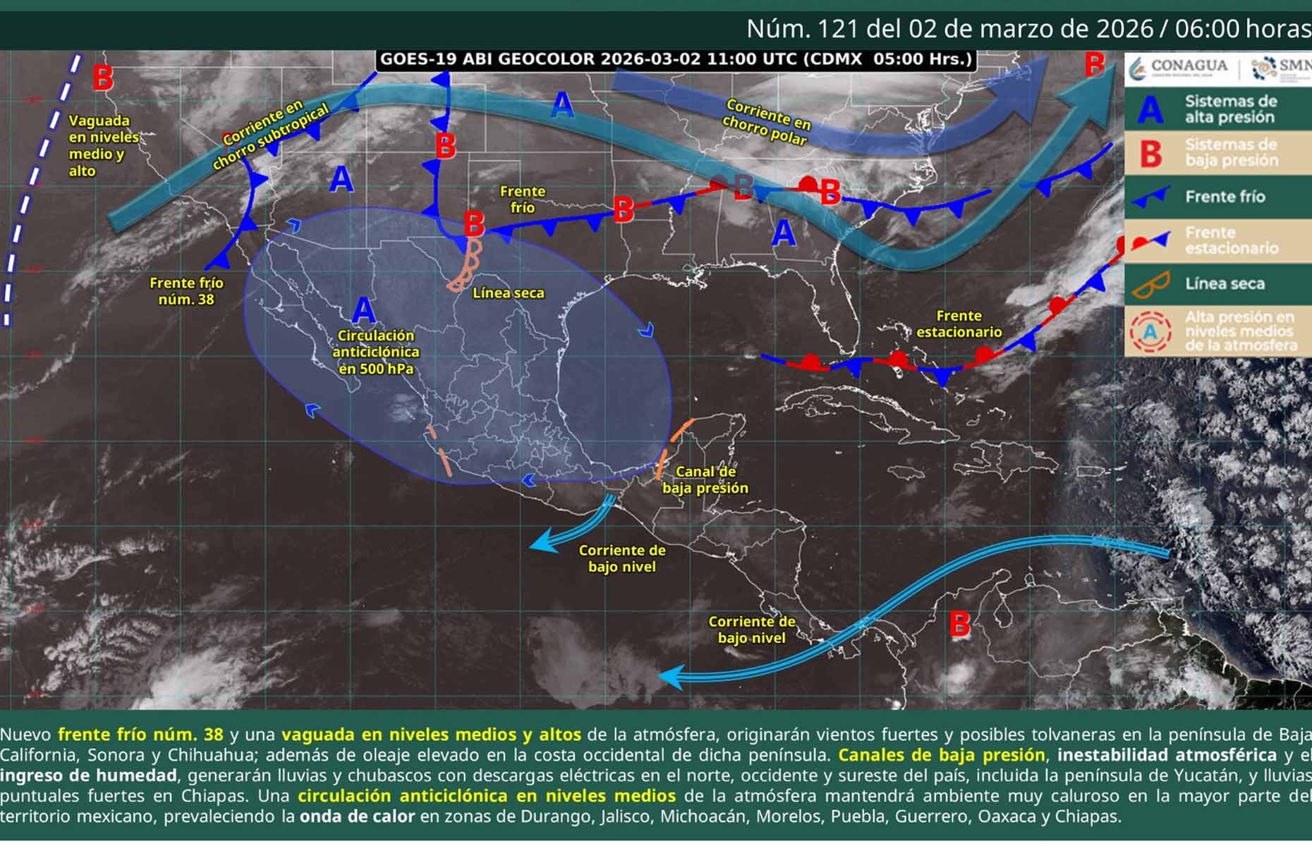 Estas condiciones se deben a la presencia de una intensa circulación anticiclónica en niveles medios y altos de la atmósfera, la cual mantiene influencia sobre el estado.