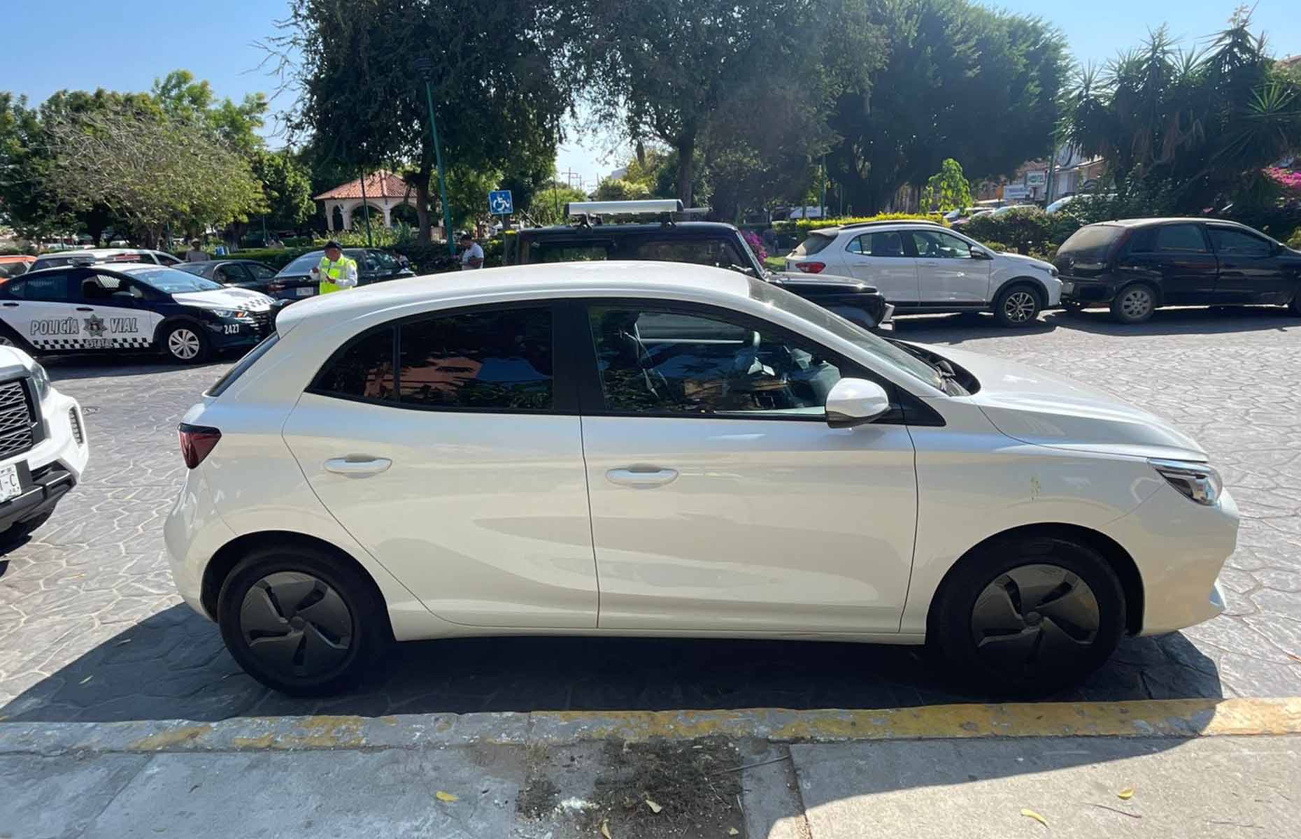 Posteriormente, elementos de la corporación estatal localizó un automóvil marca MG tipo MG3, color blanco, con placas de circulación RV6198C del estado, modelo 2025 y número de serie LSJWP4V62SZ129401, el cual se encontraba estacionado sobre la calle Gardenia, en La Crucecita, Santa María Huatulco.